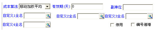 如上圖所示,在進行商品基本信息錄入時,增加了4個自定義字段。這些字段可以選擇,并且,可以通過“基本信息--商品自定義”功能來進行內容維護。商品信息的自定義字段,在相關報表查詢中,均可以進行統計和顯示。