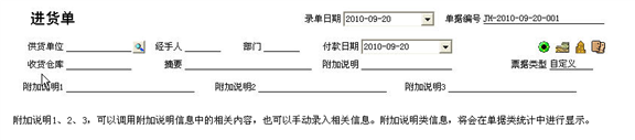 附加說明1、2、3,可以調用附加說明信息中的相關內容,也可以手動錄入相關信息。附加說明類信息,將會在單據類統計中進行顯示。